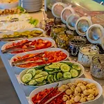 Gościom przebywającym w obiekcie codziennie rano podają śniadanie w formie bufetu. Restauracja na miejscu Przystanek Smaku oferuje śniadanie. Jest tam również bar typu lounge.